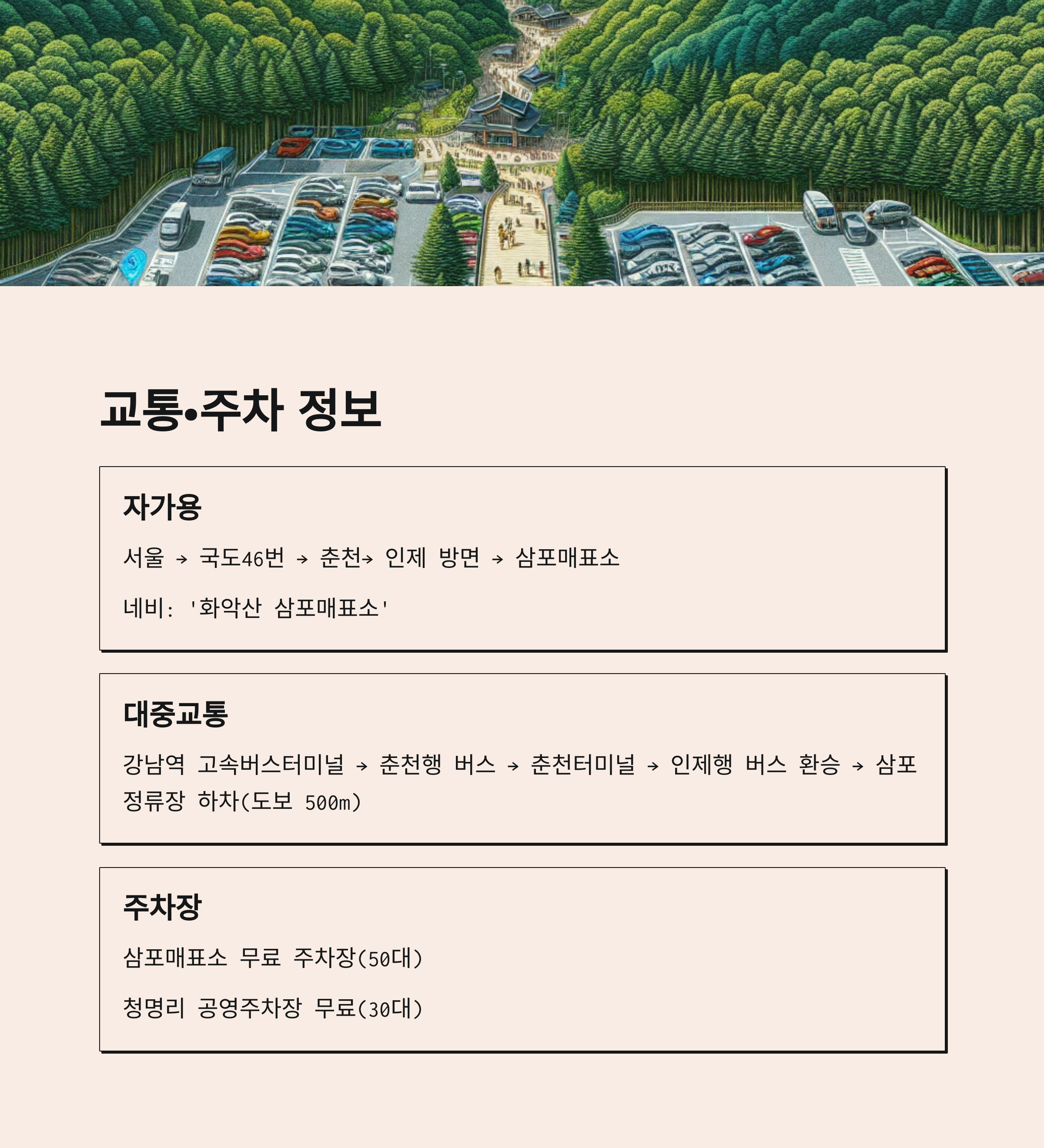 • 네비: ‘화악산 삼포매표소’ - 대중교통: