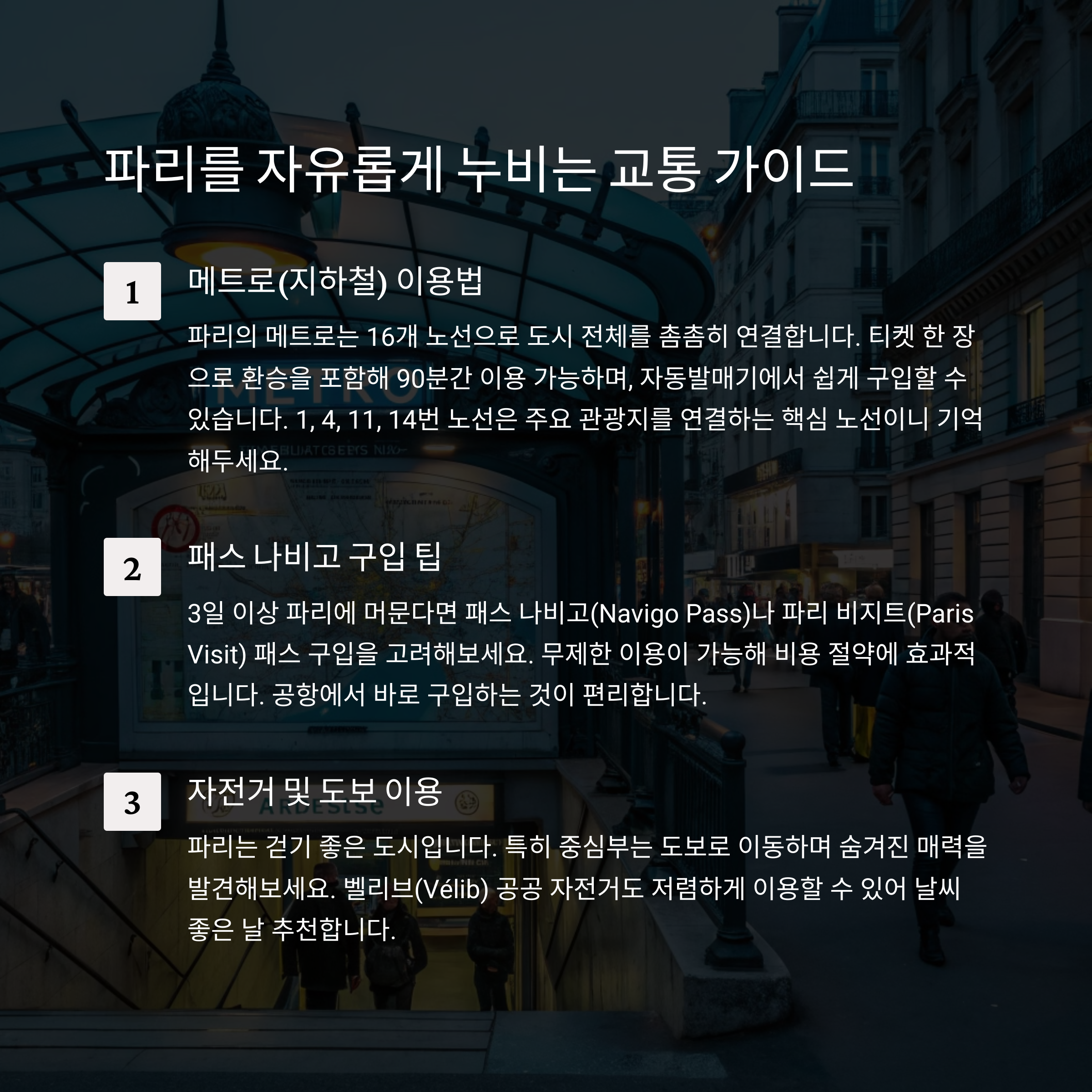 ✅ 파리 지하철 & 도보 동선 최적화로 이동 효율 극대화