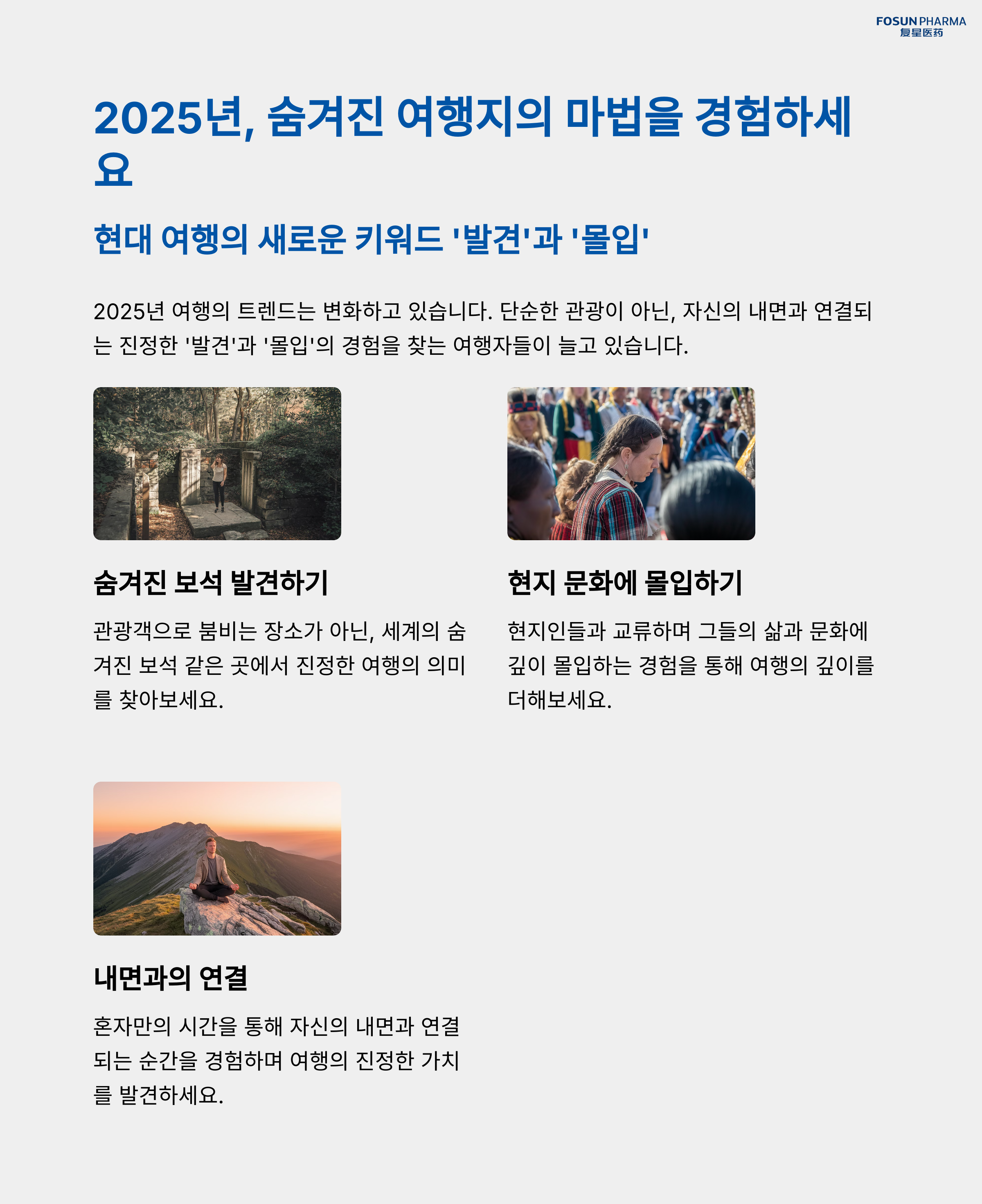 2025년의 여행 트렌드는 바로 “로컬의 재발견”, “몰입의 경험”, 그리고 “관광객 없는 보석 같은 장소”입니다.