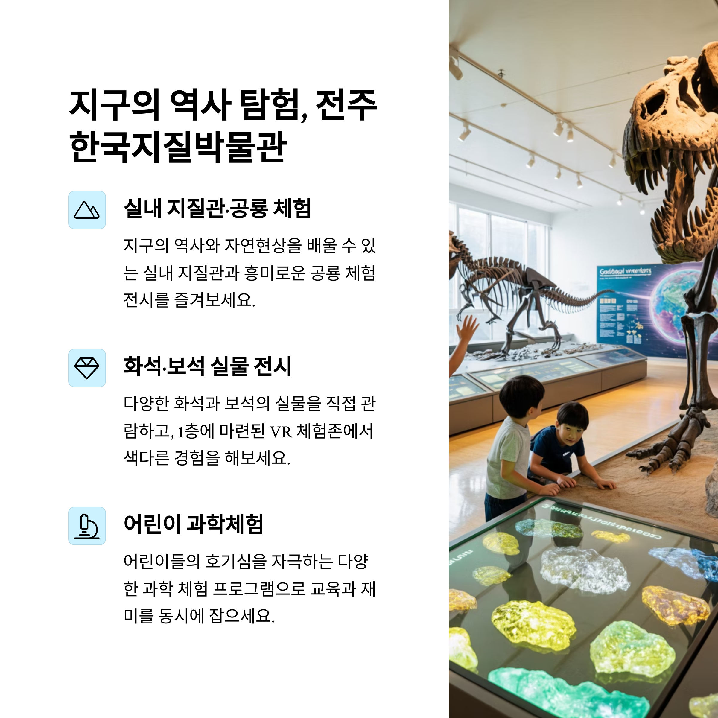 🌟 하이라이트: 보석 세공 체험, 공룡전시실, 광물 컬렉션