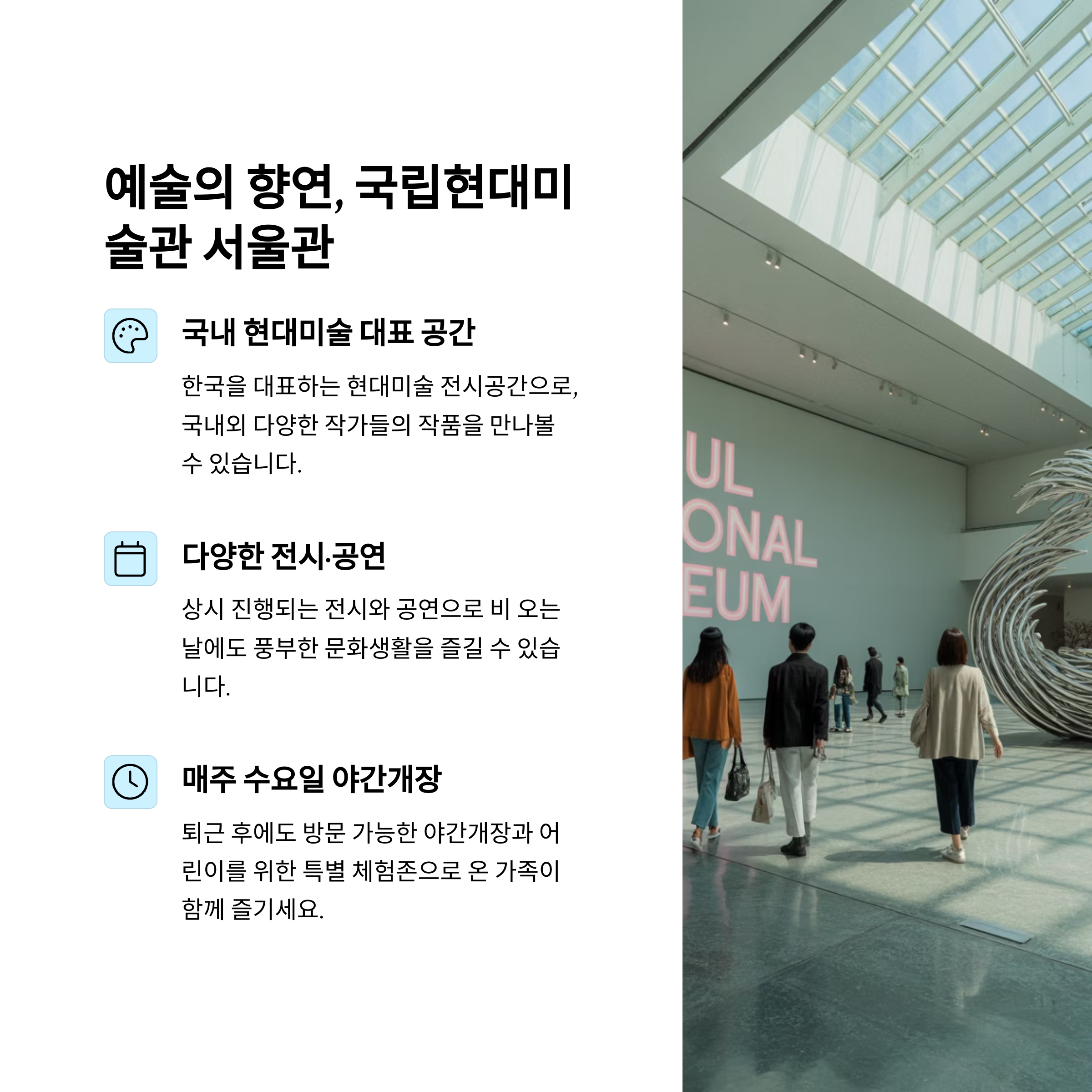 💡 팁: 미술관 앱을 이용하면 전시별 오디오 해설을 무료로 들을 수 있어요.