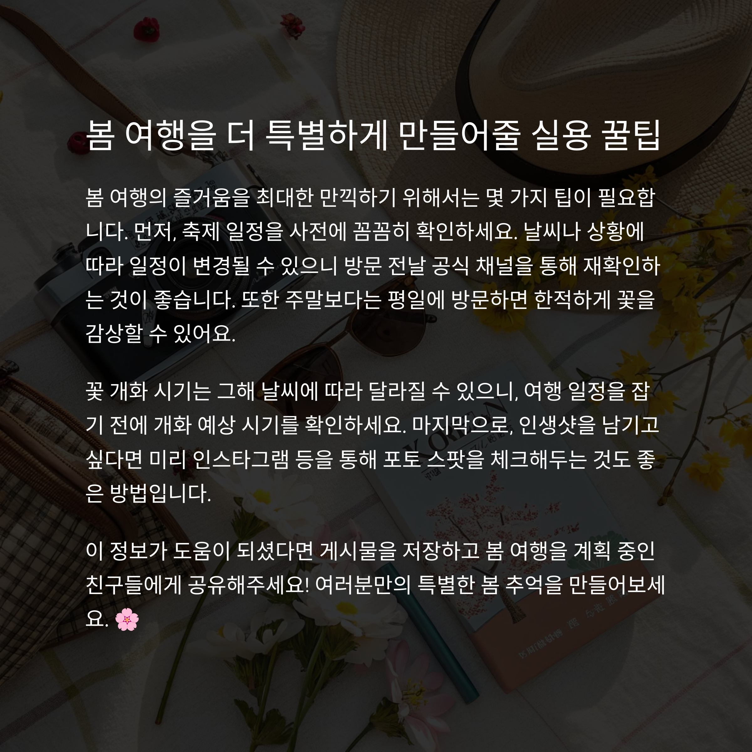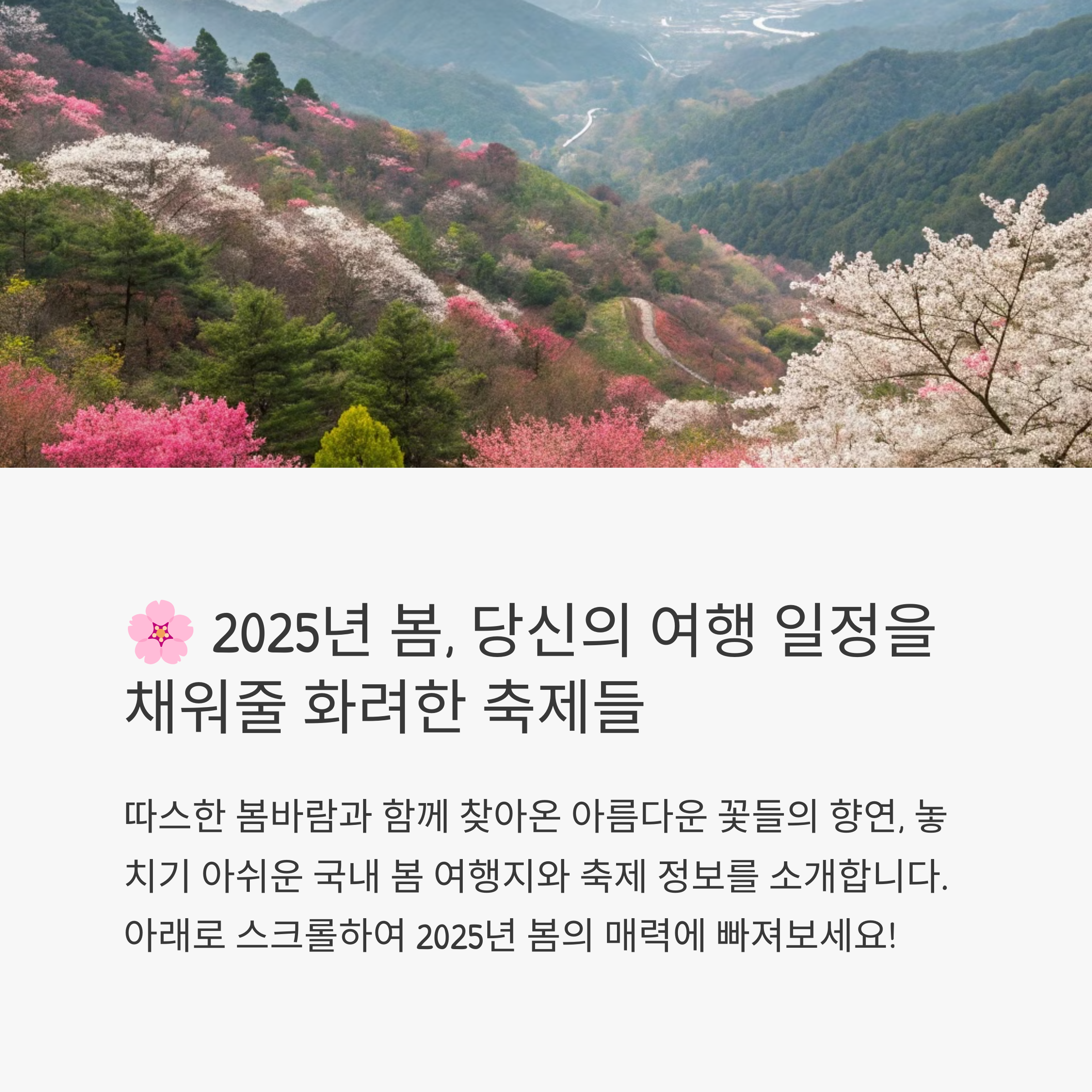 🌸 2025년, 어디로 떠나고 싶나요? 국내 봄 여행을 계획하고 아름다운 벚꽃과 꽃 축제를 즐겨보세요! 😊