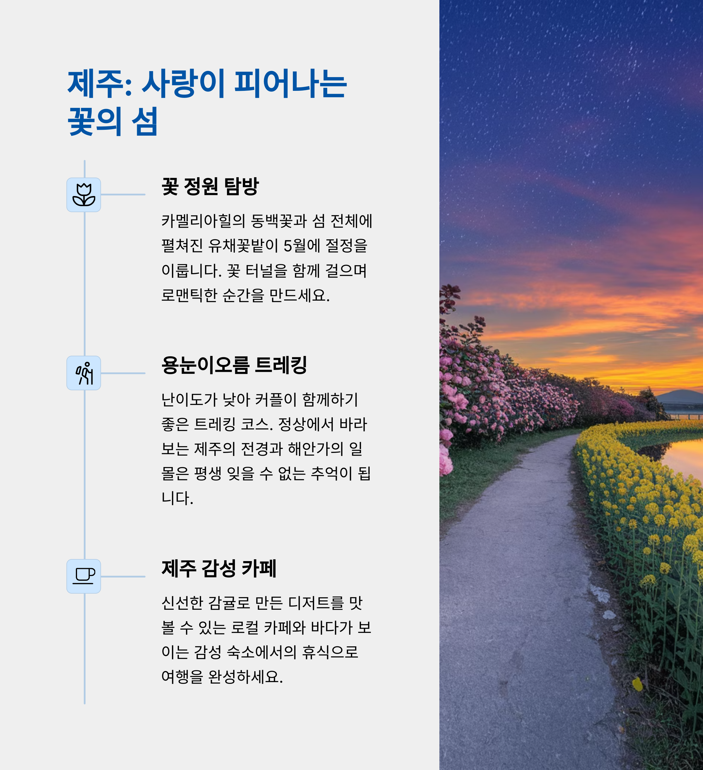 💡 팁: 새벽 일출 트레킹 후 근처 카페에서 커피 한 잔! 잊지 못할 하루의 시작이 됩니다.