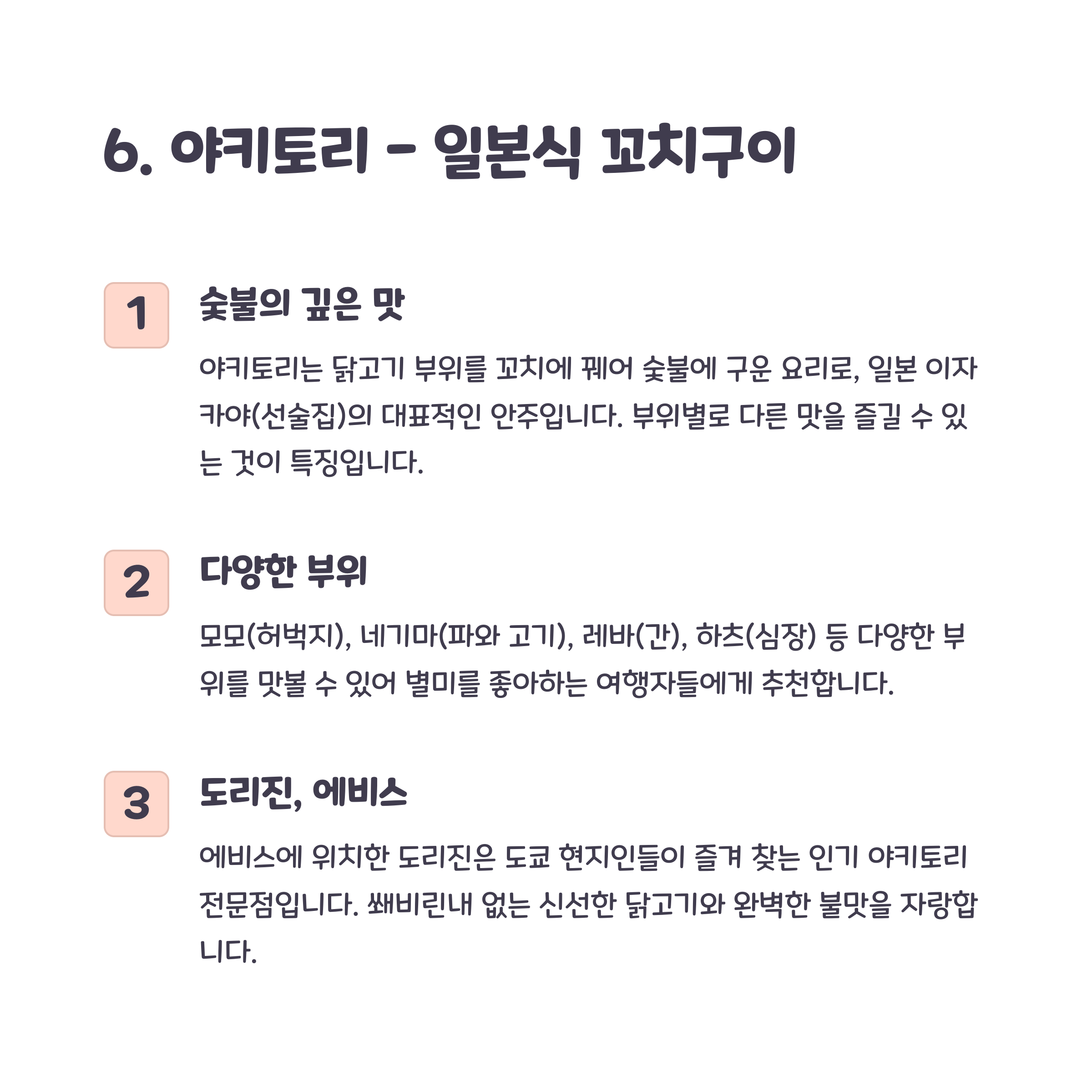 ✅ 소금구이(시오)와 간장 베이스(타레) 두 가지 맛 추천
