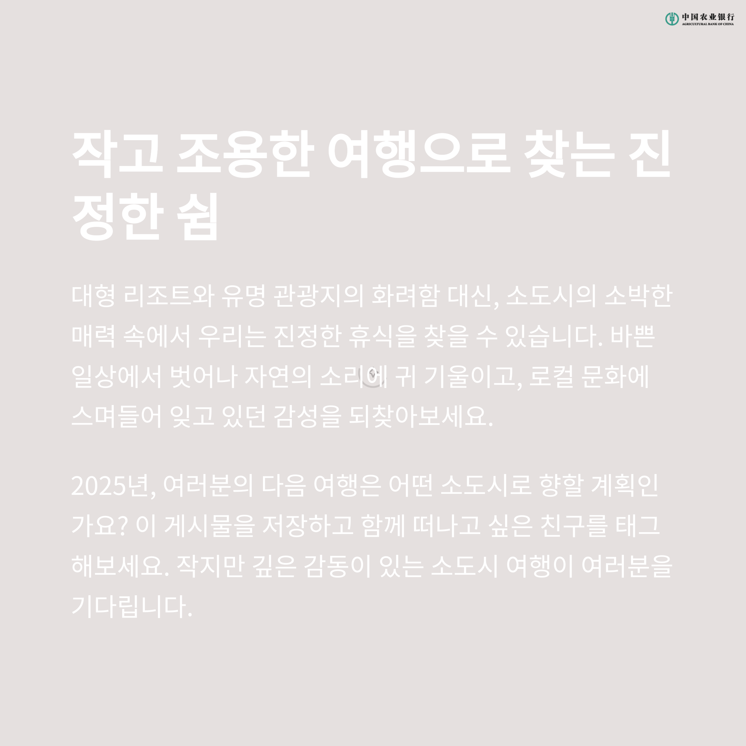 바로 ‘소도시 힐링 여행’입니다.