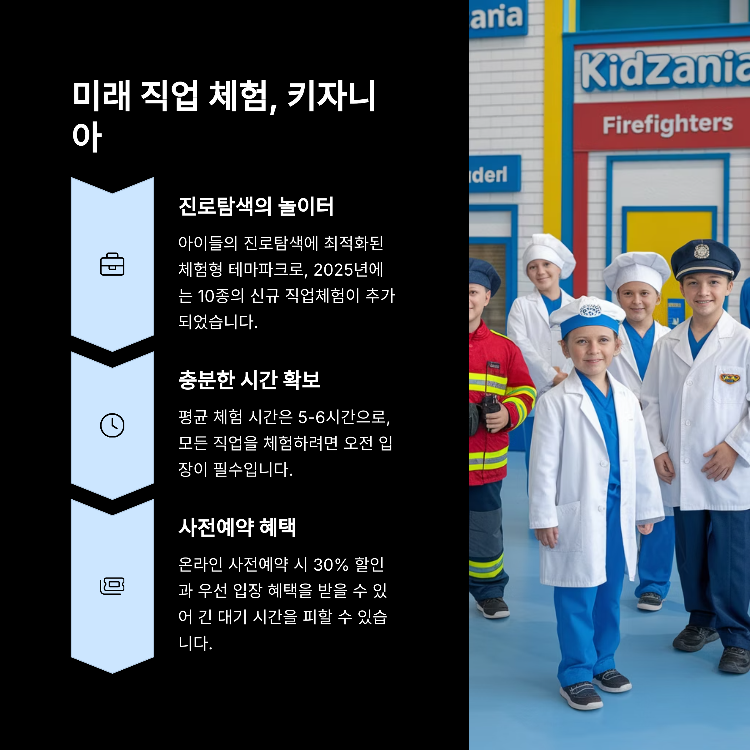 💡 꿀팁: 인기 체험(소방서, 항공사)은 입장하자마자 바로 예약하세요.