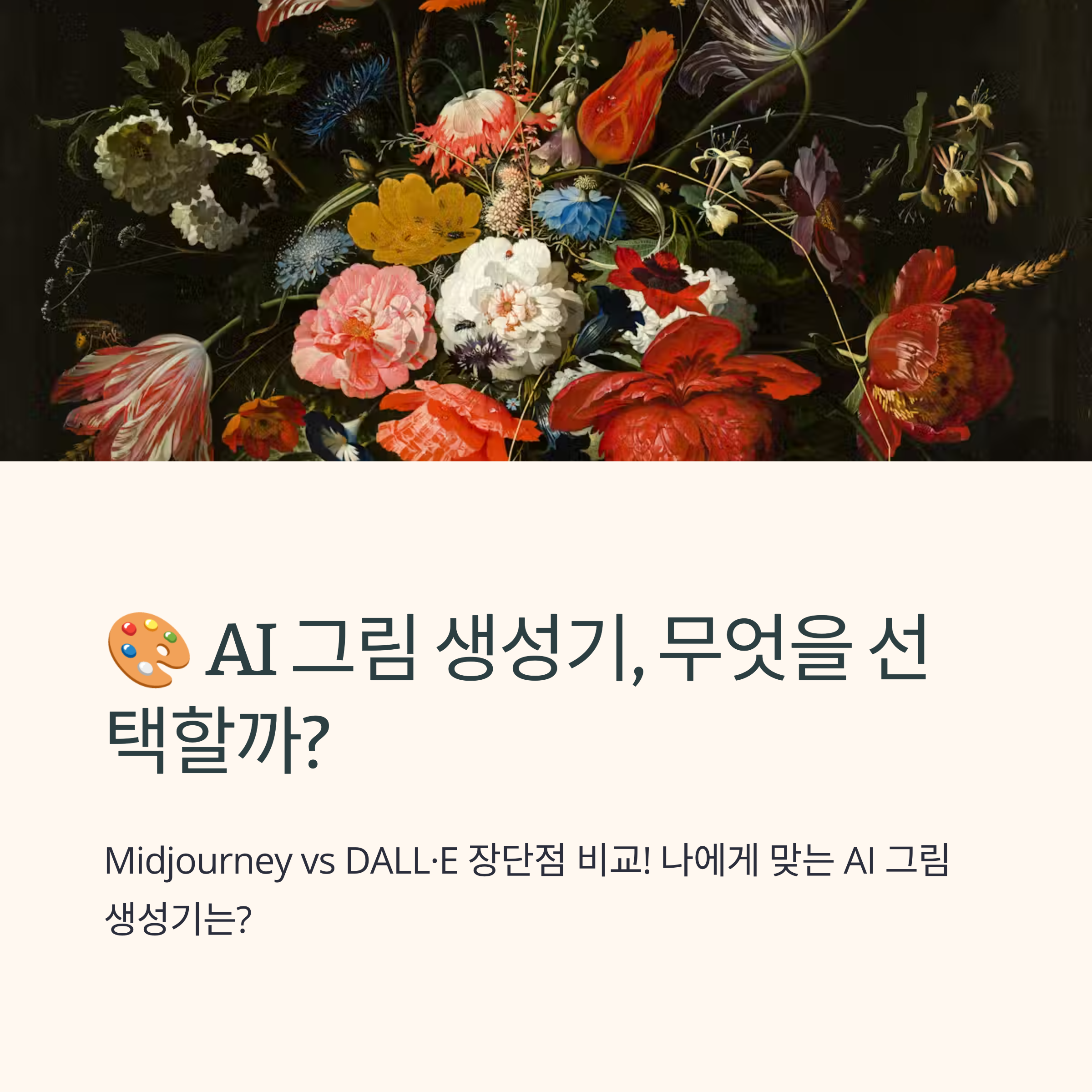 이런 고민을 해결하기 위해, Midjourney와 DALL·E의 차이점, 장단점, 활용법까지 완벽 분석해 드릴게요!