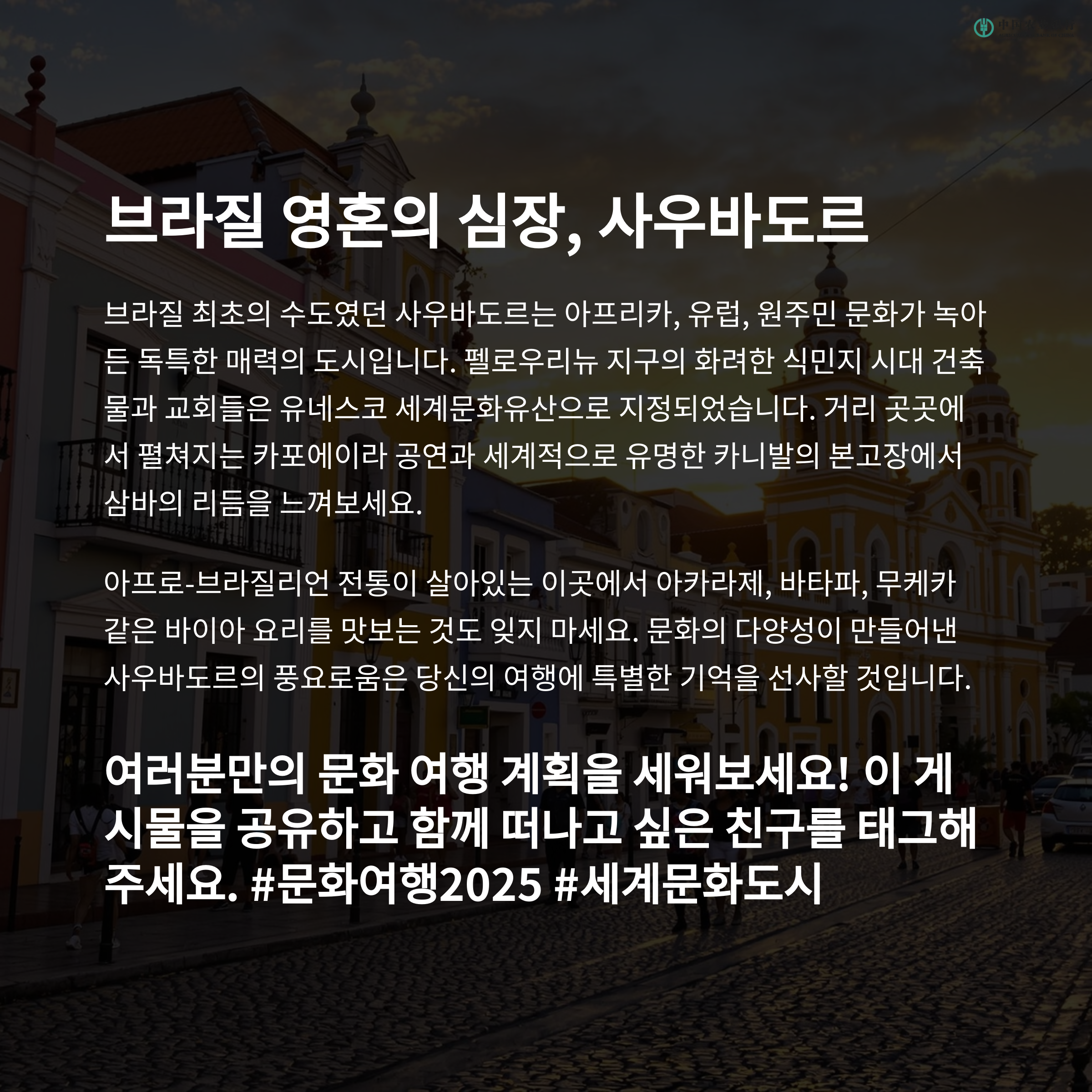 아프리카와 브라질의 문화가 섞인 독특한 도시예요.