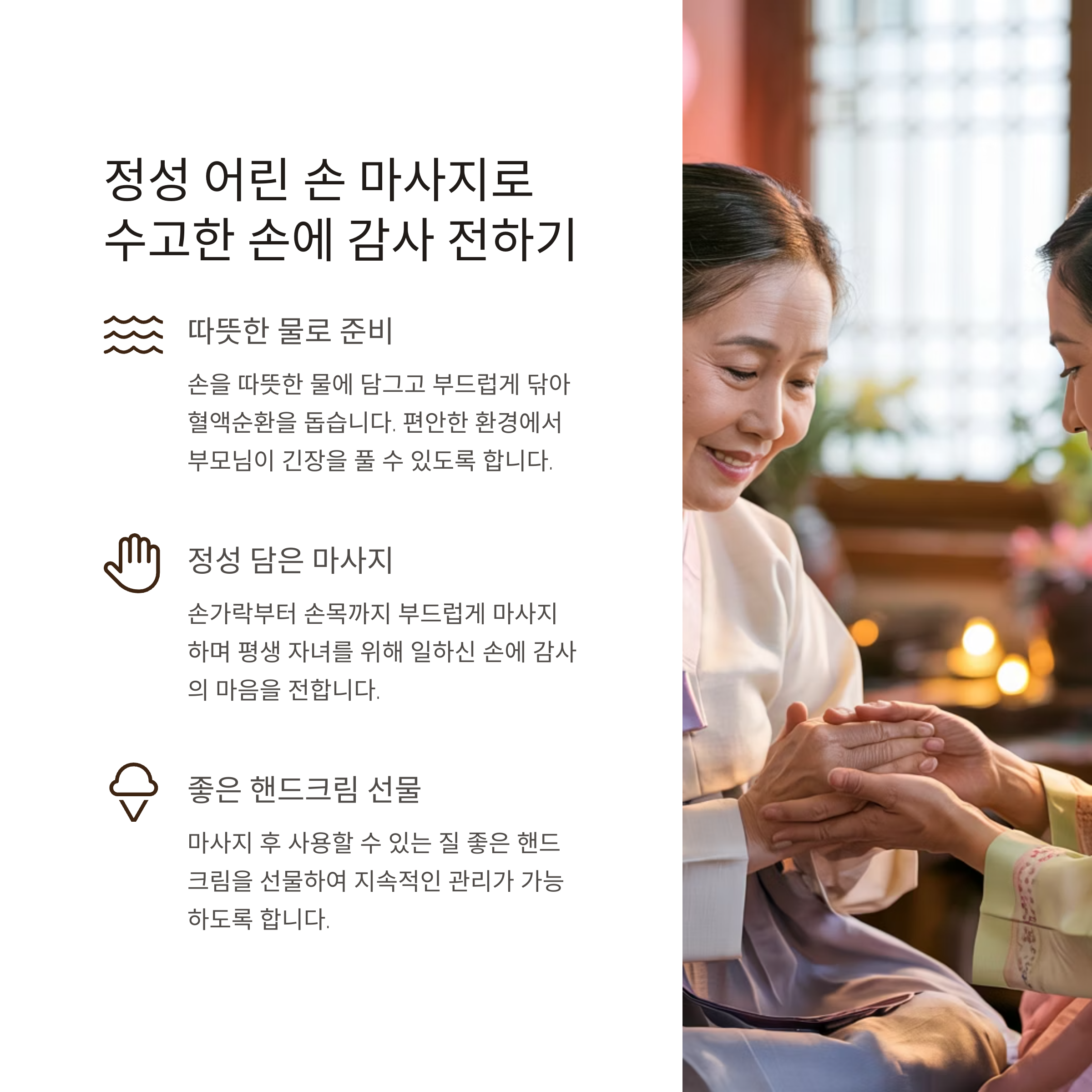 💆 6. 손 마사지 & 발찜질 – 마음을 전하는 손끝의 정성