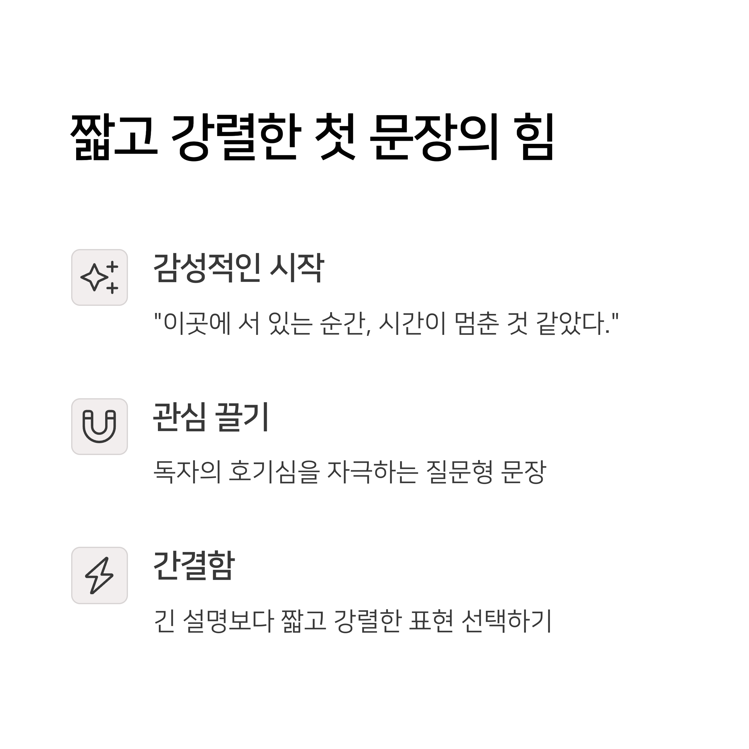 ✅ 📝 첫 문장은 짧고 강렬하게!