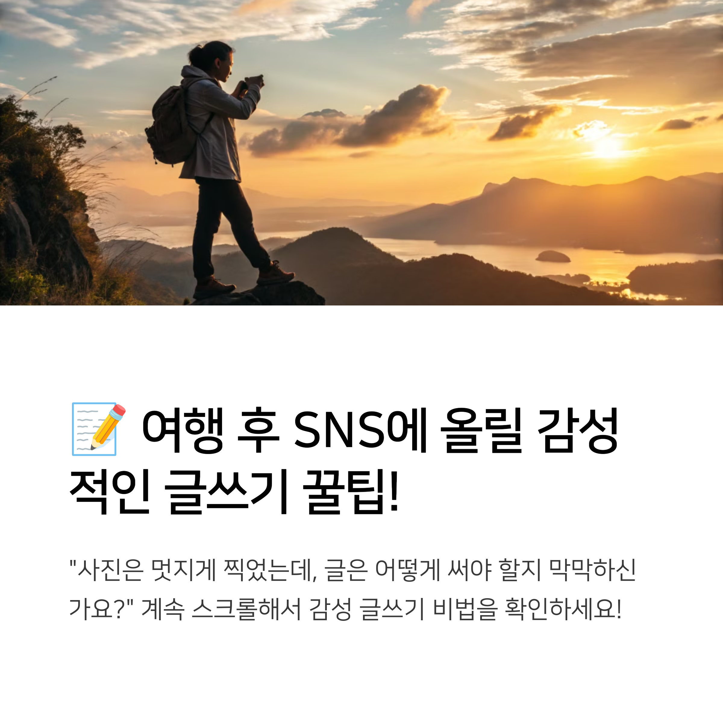 📷 멋진 여행 사진과 함께 감성적인 글을 더하면 더 많은 공감을 얻을 수 있어!
