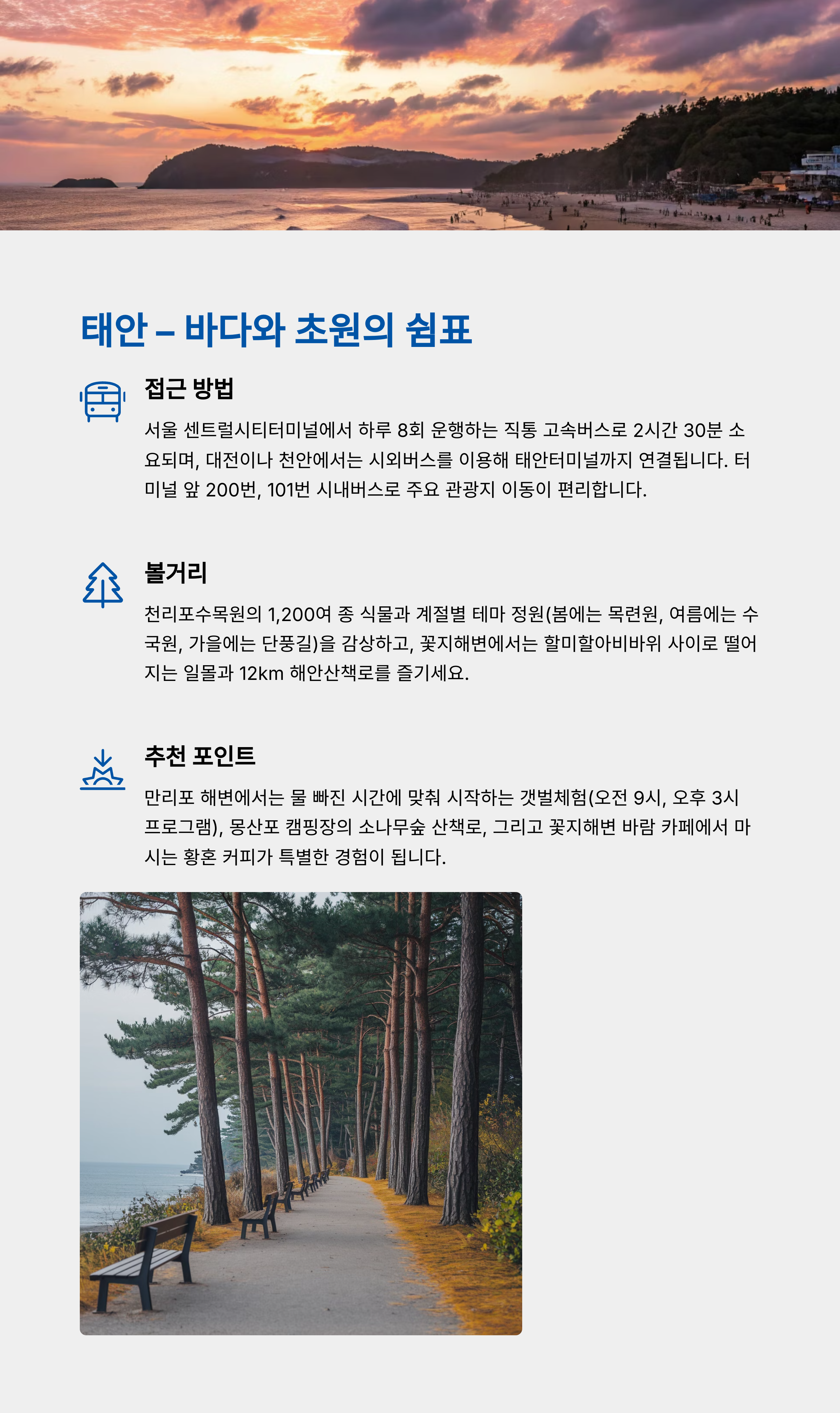 💡 여행 팁: 태안 시내버스는 Naver 지도에서 실시간 조회 가능, 지역 할인 쿠폰 북 활용