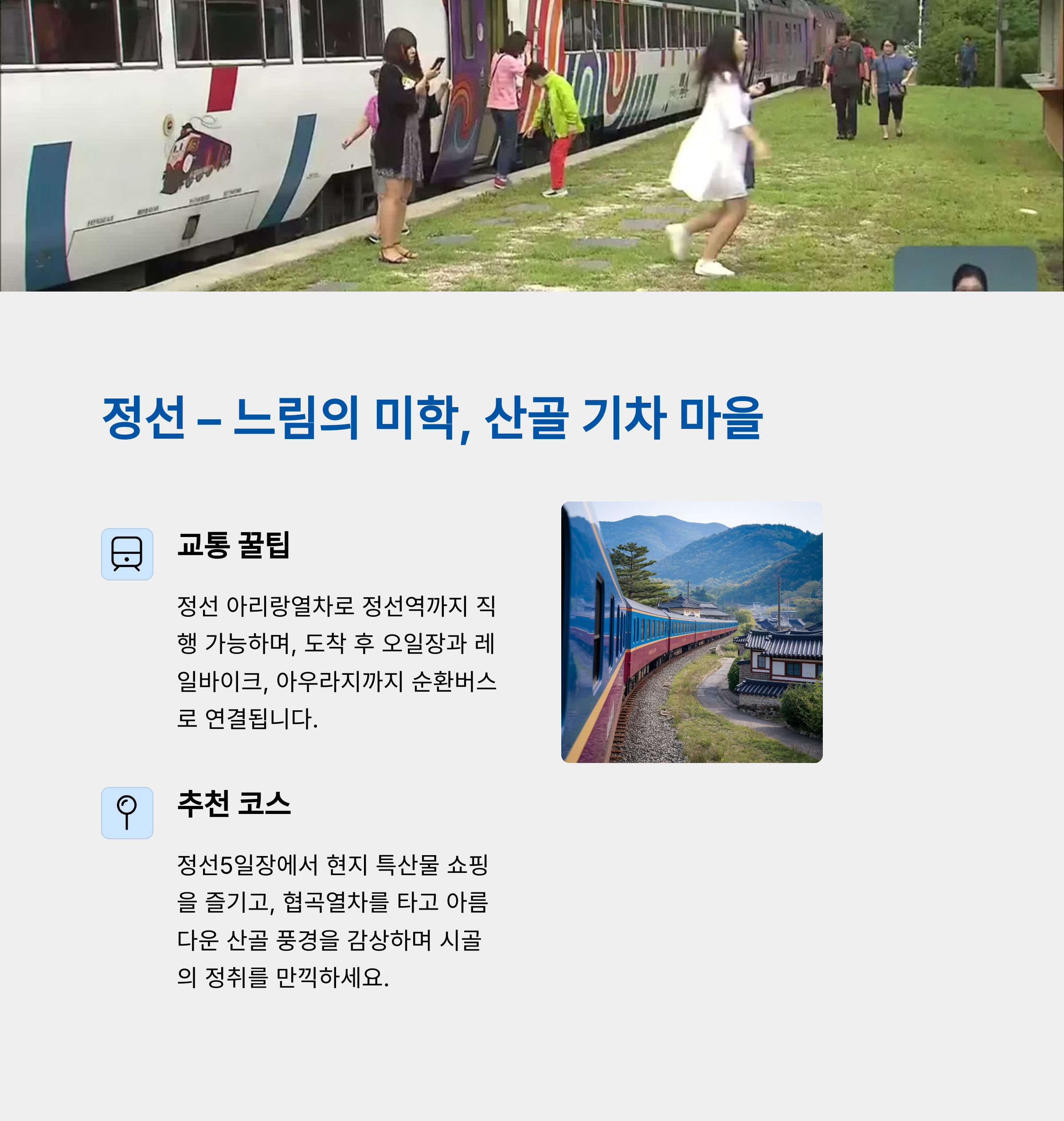 정선은 전국 어디보다 대중교통 인프라가 정갈하게 정돈된 지역입니다.