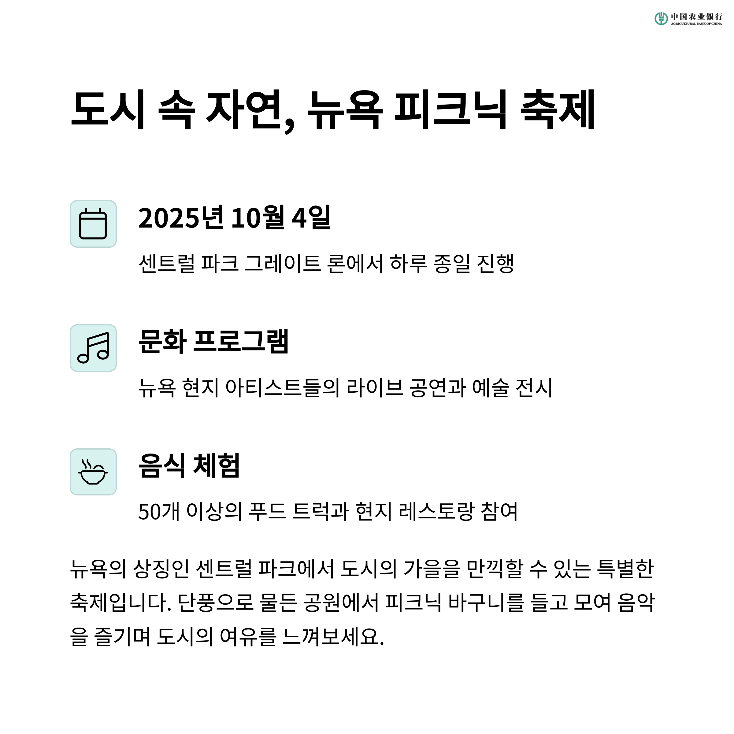 3. 미국, 뉴욕 피크닉 축제 (9월 말)