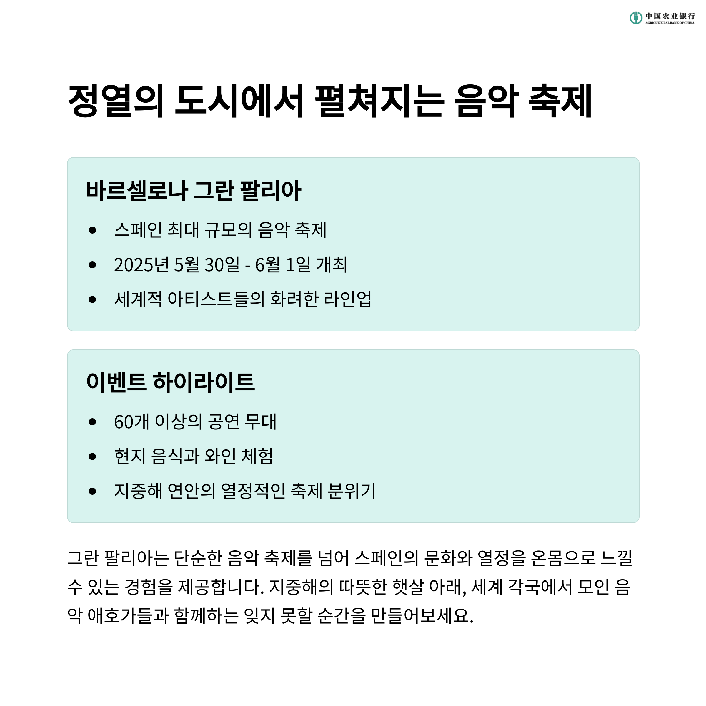2025년, 여름은 단순히 더운 날씨를 즐기는 것이 아니라, 전 세계에서 펼쳐지는 다양한 여름 축제들을 통해 문화와 음악을 직접 체험하는 시간이 될 것입니다. 바르셀로나 그란 팔리아, 하이드 파크 썸머 콘서트, 뉴올리언스 재즈 & 헤리티지 페스티벌, 고베 비엔날레, 칸 영화제 등은 그 자체로 문화적 매력을 느낄 수 있는 기회를 제공합니다. 여름, 세계 각국의 축제에서 특별한 추억을 만들어보세요!