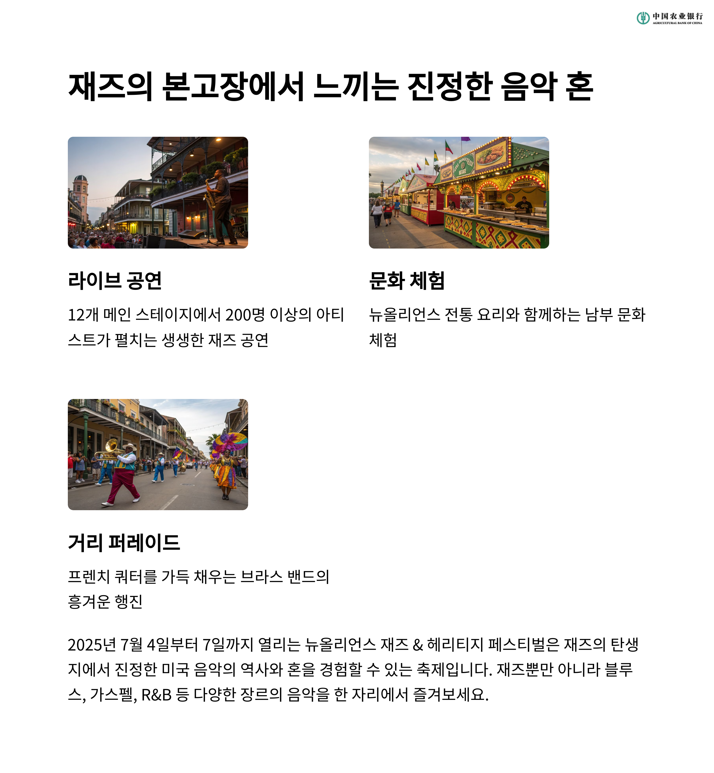 3. 미국, 뉴올리언스 재즈 & 헤리티지 페스티벌 (4월 말 - 5월 초)