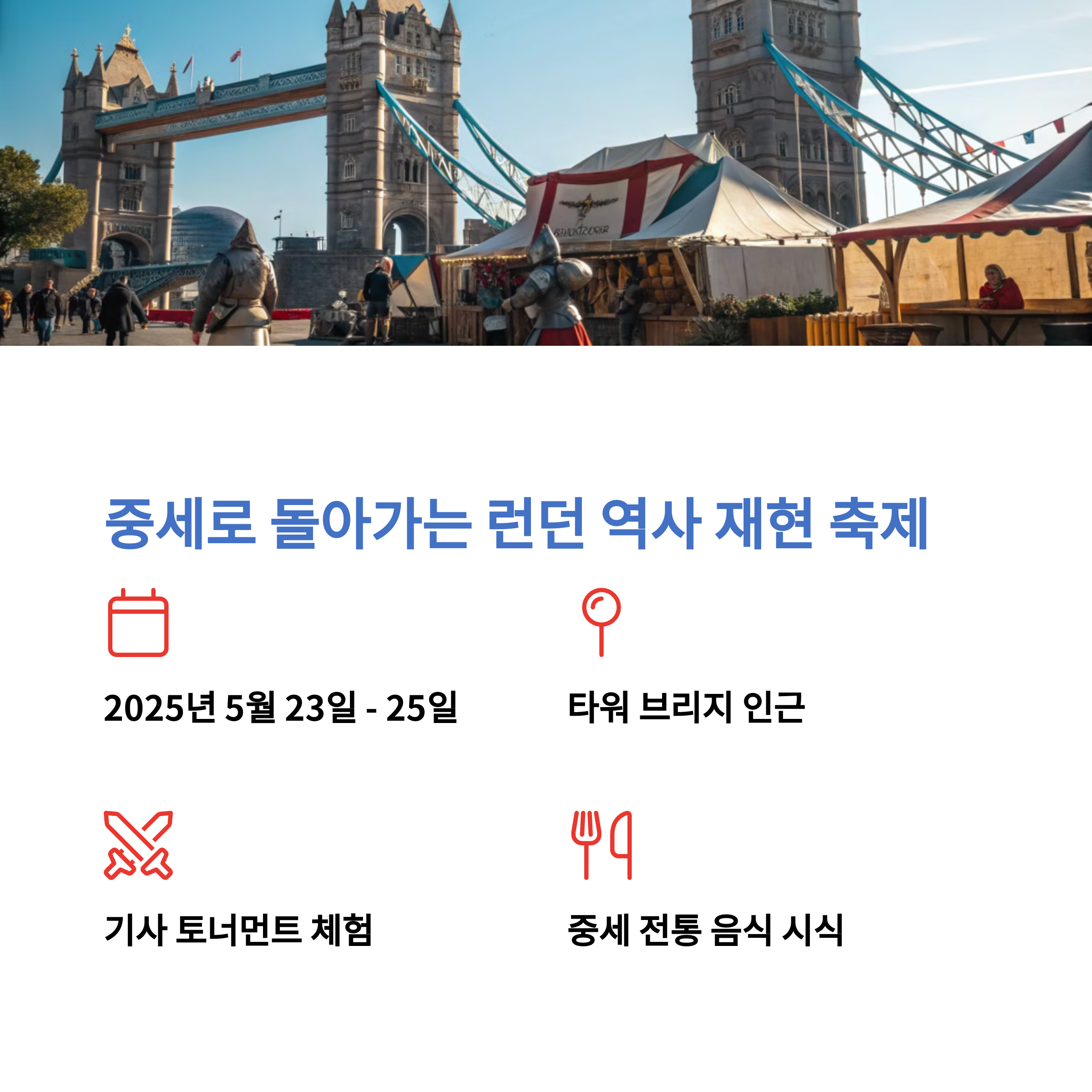 런던 역사 재현 축제는 영국 런던에서 매년 열리는 역사적 인물과 사건을 재현하는 축제입니다. 왕실 행사와 전통 의상을 체험하며 영국 역사를 배우는 축제입니다.