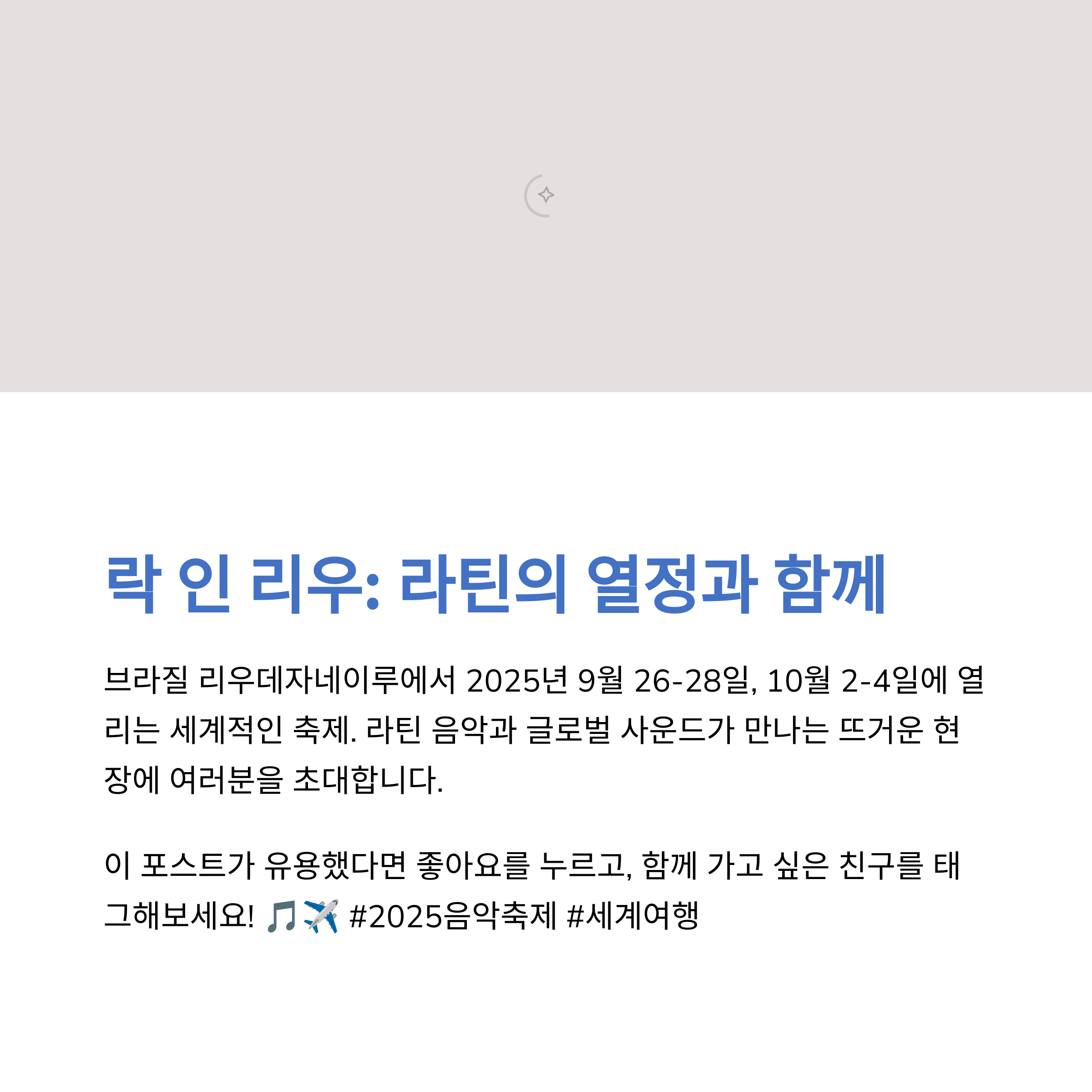 국제적 스타들과 라틴 음악의 조화가 매력적이며, 브라질 특유의 열정적인 분위기에서 음악과 댄스를 동시에 즐길 수 있습니다.