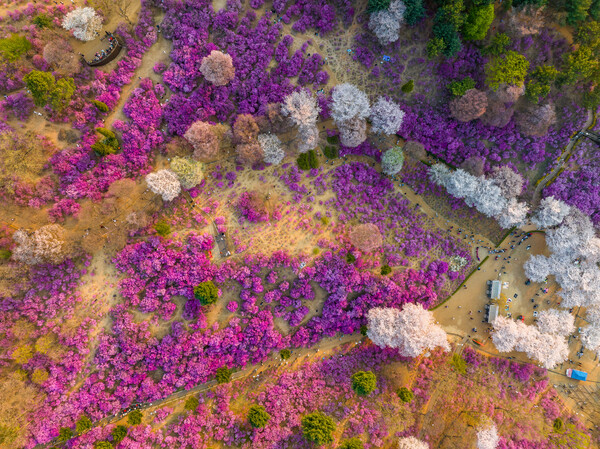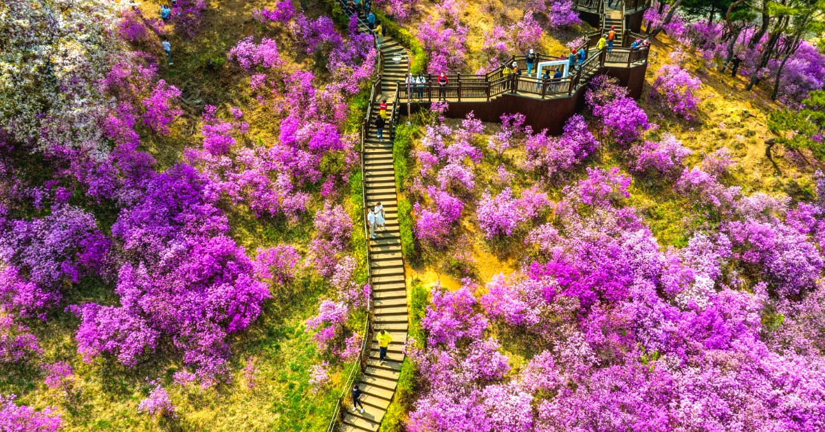 매년 봄, 약 20만 그루의 진달래가 동시에 만개하면서 산 전체가 핑크빛으로 물들죠.