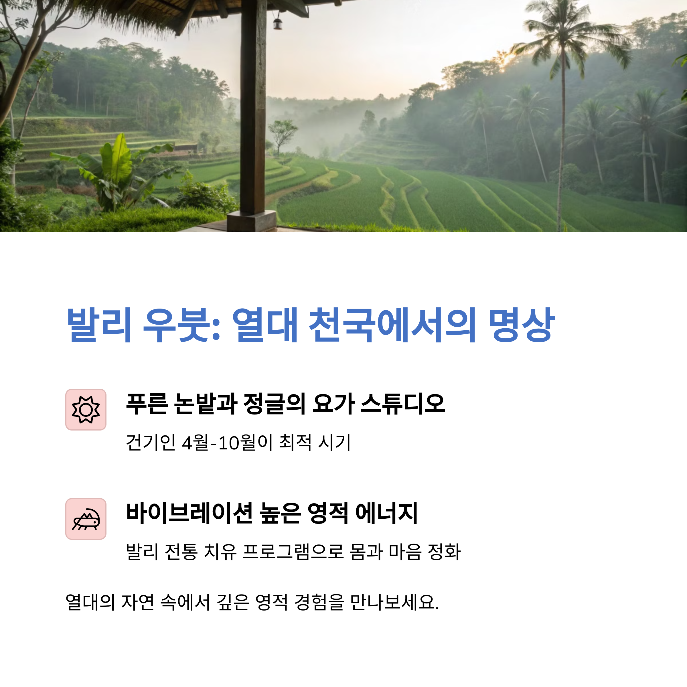 2. 발리 우붓 – 열대 숲속 자연 요가 스팟
