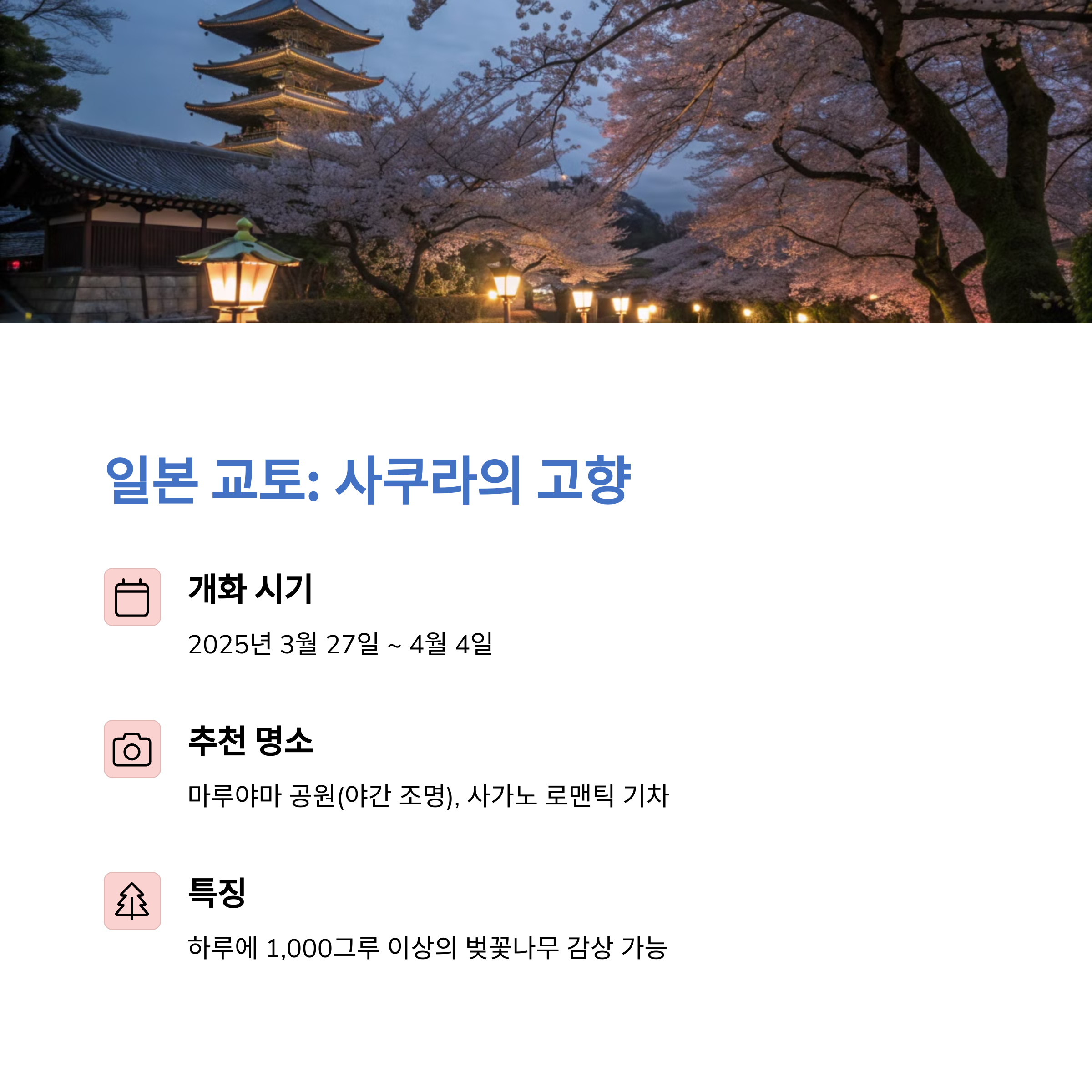 정확한 개화 시기, 행사 일정, 사진 명소, 현지 팁까지 함께 정리해 드립니다.
