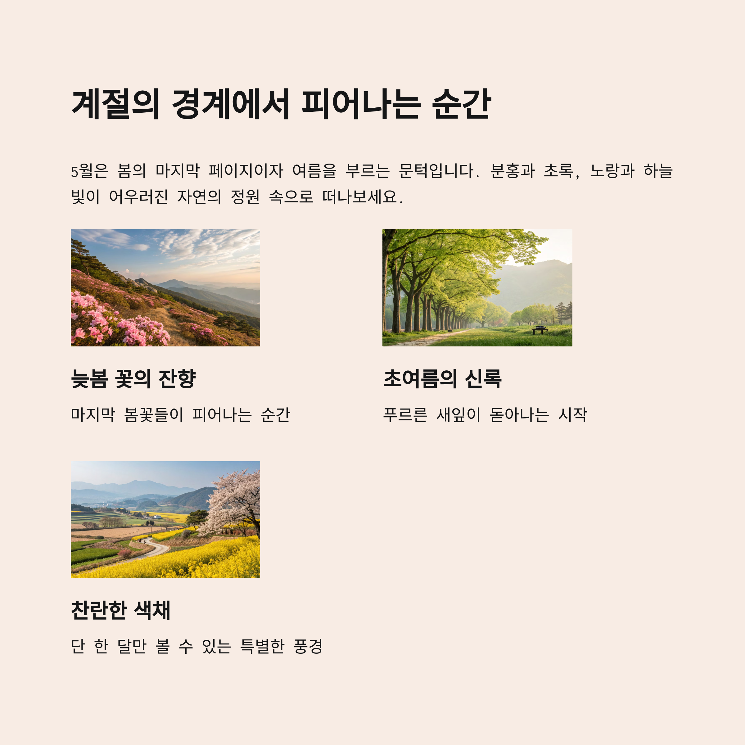 5월은 봄의 마지막 페이지이자 여름을 부르는 문턱입니다.