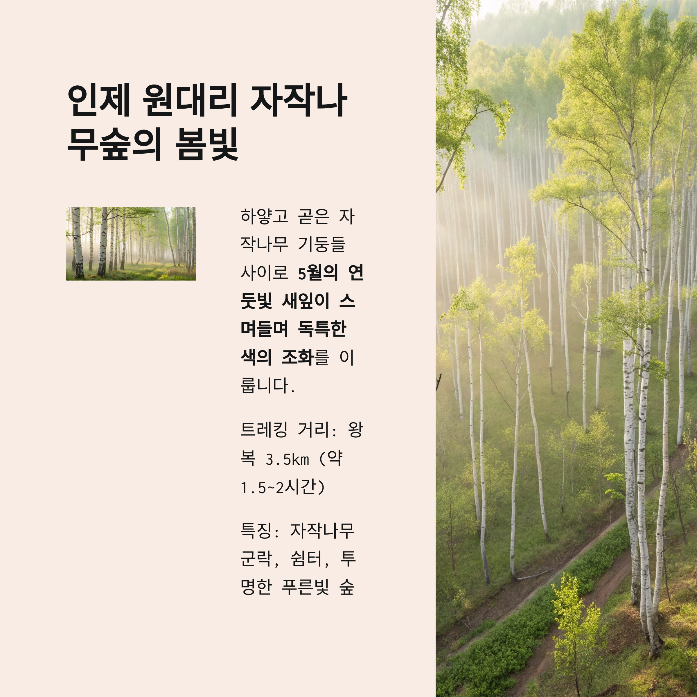 | 왕복 3.5km | 약 1.5~2시간 | 자작나무 군락, 쉼터 |
