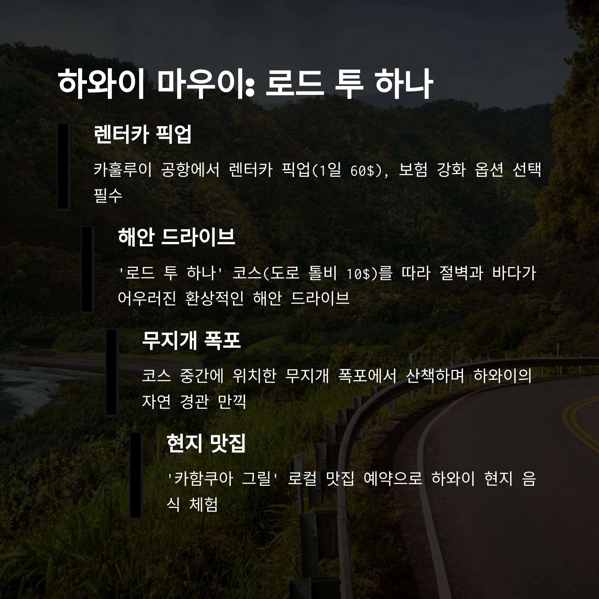 - ‘로드 투 하나’ 코스(도로 톨비 10$)
