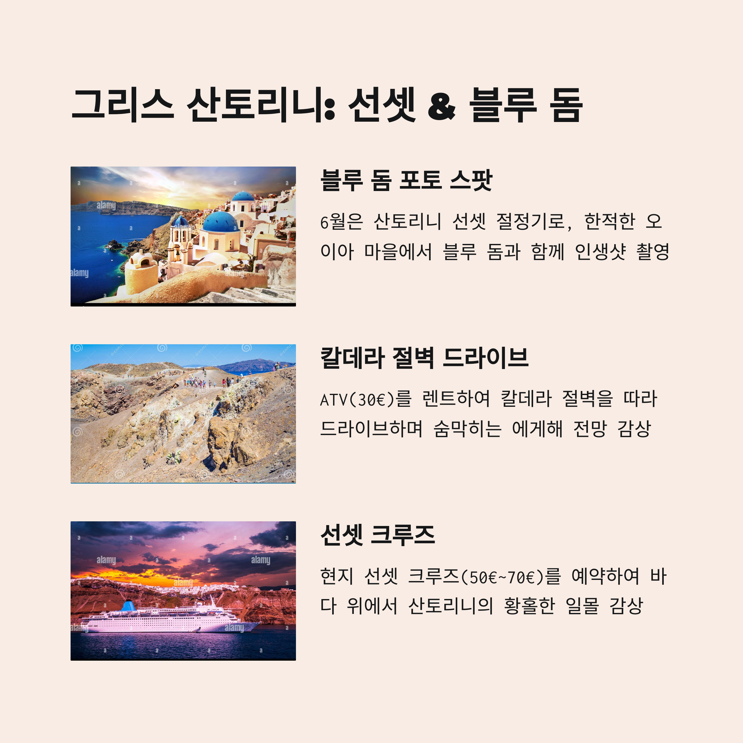 “다섯 번째 6월 해외여행추천 여행지는 로맨틱한 산토리니입니다.”