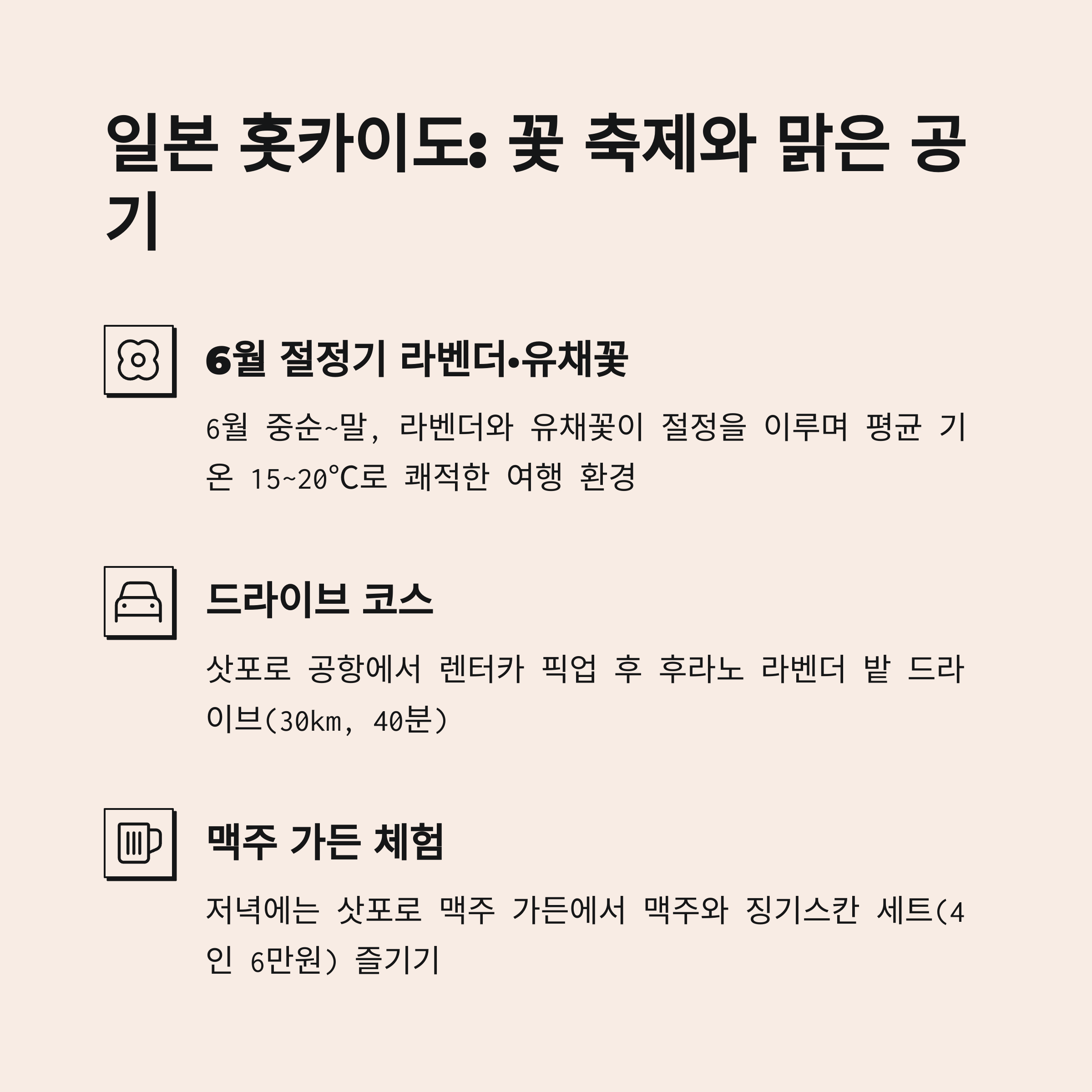 ✈️ 1. 일본 홋카이도 꽃 축제 & 맑은 공기