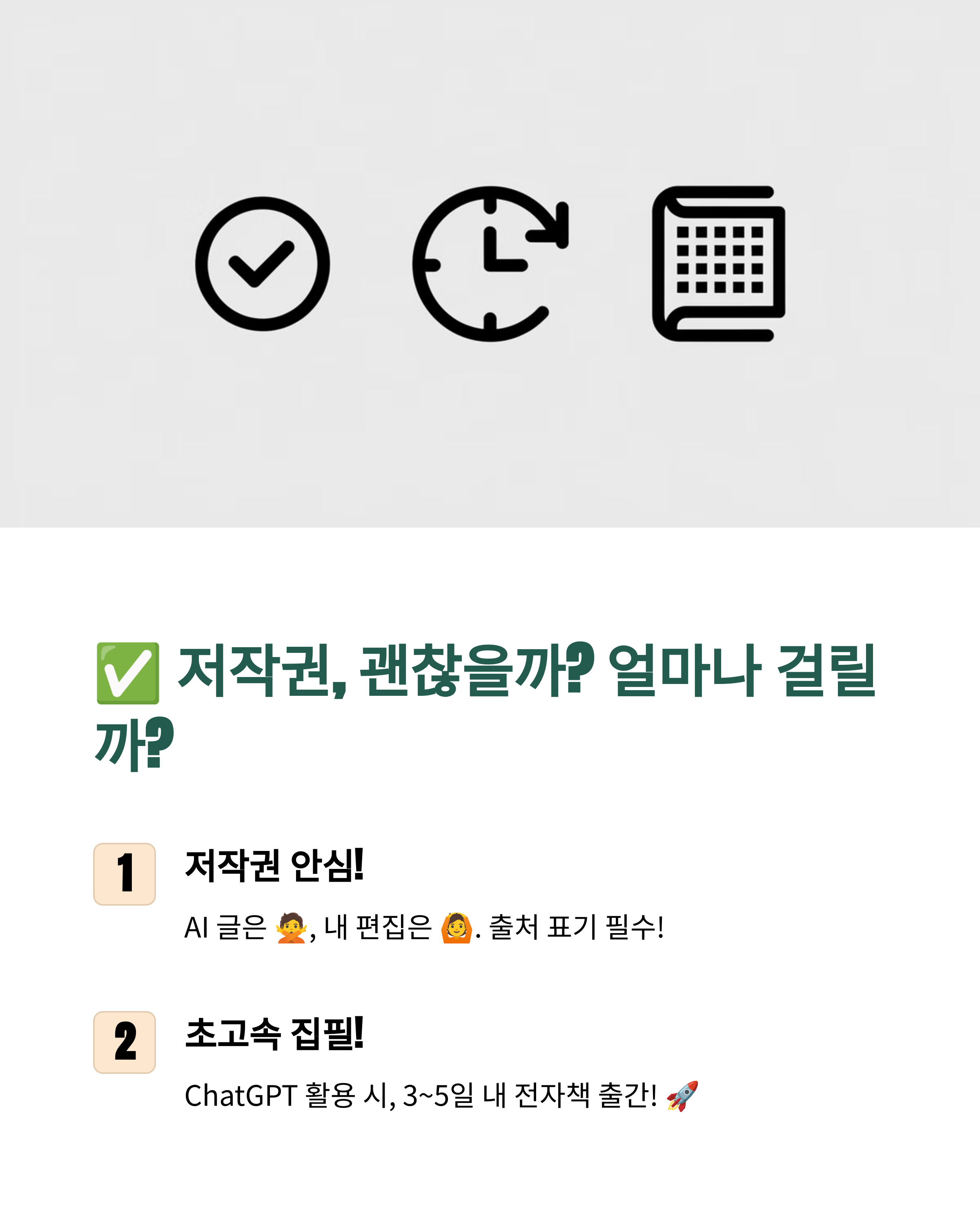 ✔ 콘텐츠 제작 속도 🚀 – 하루 만에 책 한 권 뚝딱