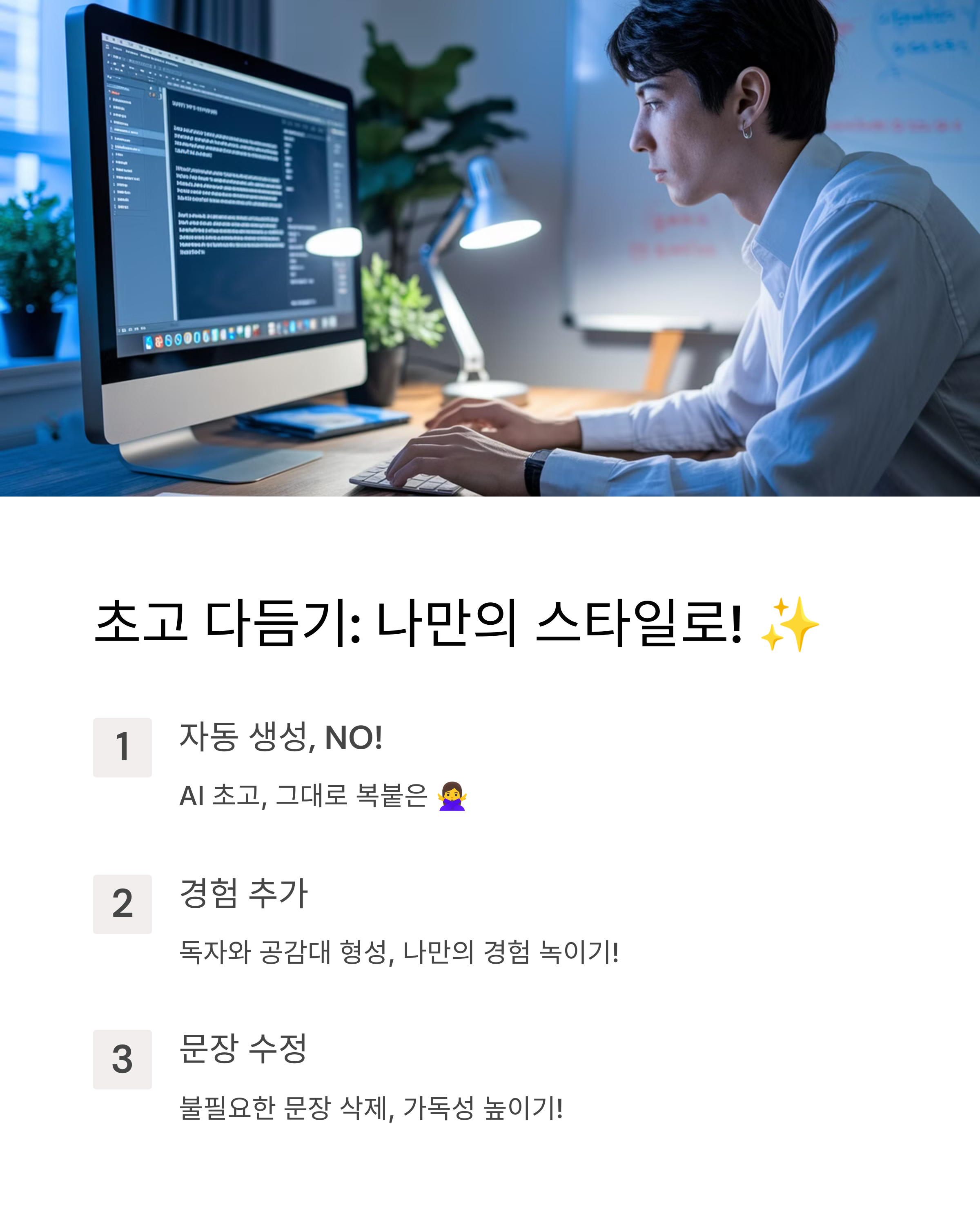 2️⃣ AI가 쓴 초안을 내 스타일로 다듬기 ✍️